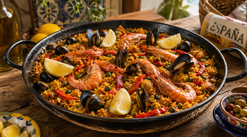 In Spanien wird Paella häufig mittags gegessen, weil sie als eher gehaltvolles Gericht gilt. Sie ist ein perfektes Beispiel dafür, wie regionale Zutaten, Tradition und gemeinsames Essen zusammenkommen.